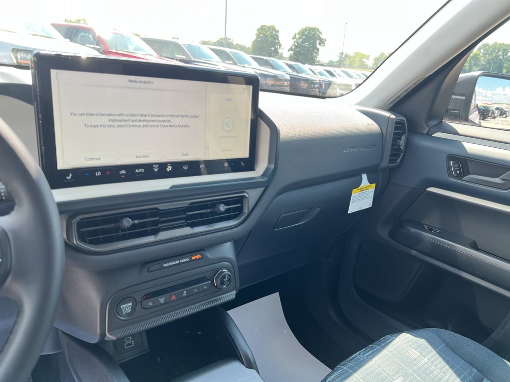 Apple CarPlay: Seamless smartphone integration for the Ford Bronco Sport - stay connected and entertained on the go! See what's behind you with the back up camera on this vehicle. The state of the art park assist system will guide you easily into any spot. Start this unit from inside with remote start. The vehicle comes equipped with Android Auto for seamless smartphone integration on the road. Bluetooth® technology is built into this mid-size suv, keeping your hands on the steering wheel and your focus on the road. This model keeps you comfortable with Auto Climate. The Ford Bronco Sport has automated speed control that adjusts to maintain a safe following distance, enhancing highway driving convenience. Set the temperature exactly where you are most comfortable in this vehicle. The fan speed and temperature will automatically adjust to maintain your preferred zone climate. This Ford Bronco Sport has a 3 Cyl, 1.5L high output engine.