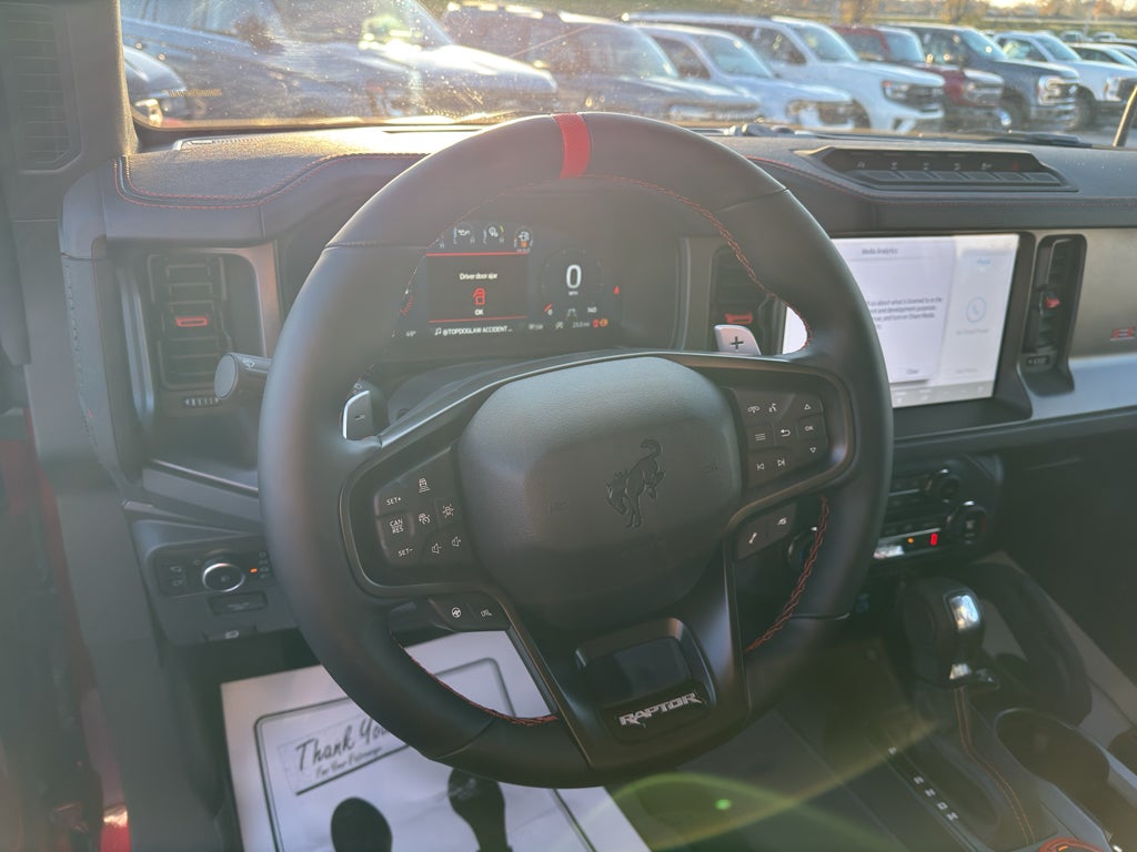 Discover rugged capability and refined comfort with this 2025 Ford Bronco Raptor, now available in Franklin, KY. Powered by a potent V6 3.0L gasoline engine and equipped with AWD, this Ford Bronco Raptor delivers commanding performance on pavement and off the beaten path. Built for adventurous driving, it features an Off-Road Package that enhances traction, suspension, and durability so you can confidently tackle trails, mud, and rough terrain. Inside, enjoy smart connectivity and convenience with Android Auto and Hands-Free Bluetooth® for seamless smartphone integration and safer driving. Cold mornings are no match for the Heated Steering Wheel, and Remote Start lets you warm up or cool down the cabin before you even step outside. The cabin is designed with driver-focused controls, comfortable seating, and durable materials to handle active lifestyles without sacrificing comfort. Located in Franklin, KY, this 2025 Ford Bronco Raptor is priced to move — offering the best price in the area for a vehicle with this combination of performance, technology, and off-road capability. Whether you're commuting, towing, or exploring, this Ford Bronco Raptor is ready for every journey. Contact us today to schedule a test drive and experience the power and precision of the 2025 Ford Bronco Raptor for yourself.