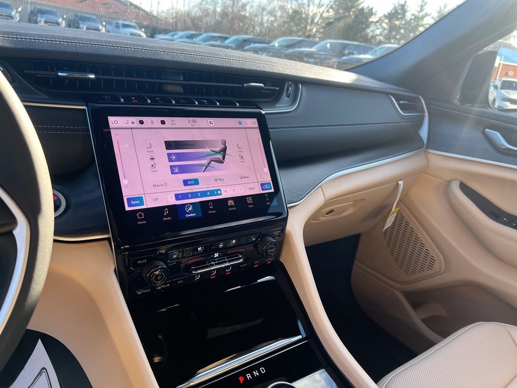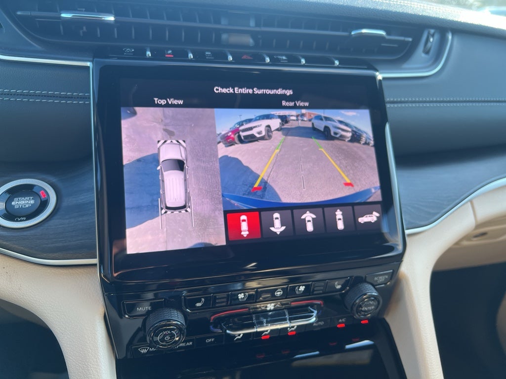 Luxury Tech Group II: Power Tilt/telescope Steering Column; Integrated Off-Road Camera; Surround View Camera System; Rain Sensitive Windshield Wipers; ParkSense Front/rear Park Assist with Stop; Front/rear Doors and Liftgate with Passive Entry; Wireless Charging Pad; Rear Back-Up Camera Washer; Ventilated Front Seats; Auto Dim Exterior Driver Mirror; Capri Leatherette with Axis II Seats; 2nd-Row Manual Window Shades; Intersection Collision Assist System; Rearview Autodim Digital Display Mirror; Memory Steering Column. Quick Order Package 22E. MOPAR Finishing Package: MOPAR Rear Splash Guards with Jeep Logo; MOPAR Paint Protection Film; MOPAR Front Splash Guards. Dual-Pane Panoramic Sunroof. Diamond Black Crystal PC. **Equipment listed is based on original vehicle build and subject to change. Please confirm the accuracy of the included equipment by calling the dealer prior to purchase.**