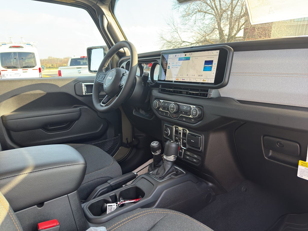 Convenience Group: Emergency/Assistance Call; Front Door Locks 2-Door Passive Entry; Remote Start System; Body Color Fender Flares (2-Piece); Cluster 7.0" TFT Color Display; Universal Garage Door Opener; Daytime Running Lamp System; Heated Front Seats; Air Conditioning W/Auto Temp Control; Heated Steering Wheel; Corning Gorilla Glass. Quick Order Package 24W Willys: LED Taillamps; Protection Sill Rails; 4-Wheel Drive Decal; Black Grille; MOPAR All-Weather Slush Mats; LT255/75R17C OWL On/Off Road Tires; Body Color Fender Flares (2-Piece); Front Heavy Duty Red Accent Shock Absorbers; Daytime Running Lamps LED Accents; Front LED Fog Lamps; LED Premium Reflector Headlamps; E-Locker Rear Axle; Corning Gorilla Glass; Trailer Hitch Zoom; Class IV Receiver Hitch; Security Alarm; Mold In Color Bumper W/Gloss Black; Advanced Brake Assist; Willys Suspension; Heavy Duty Engine Cooling; Automatic Headlamps; Air Conditioning W/Auto Temp Control; 5. 950 lbs GVWR; Deep Tint Sunscreen Windows; Off-Road Plus Mode; 17" X 7.5" Painted Black Wheels; Willys Hood Decal; Full Speed Forward Collision Warning Plus; Rear Heavy Duty Red Accent Shock Absorbers; Front Door Locks 2-Door Passive Entry; Cluster 7.0" TFT Color Display; Power Heated Mirrors; Auxiliary Switches; Premium Wrapped Steering Wheel; Sun Visors W/Illuminated Vanity Mirrors. Black 3-Piece Hard Top. 41. MOPAR Spray In Bedliner. **Equipment listed is based on original vehicle build and subject to change. Please confirm the accuracy of the included equipment by calling the dealer prior to purchase.**