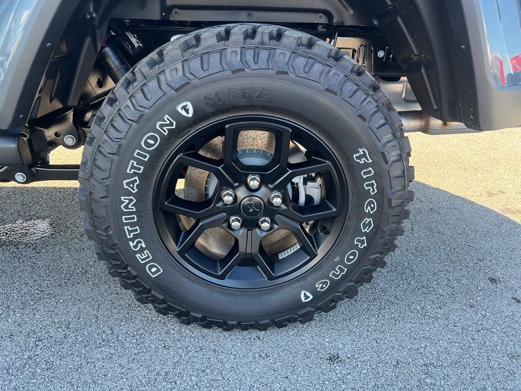 Convenience Group: Emergency/Assistance Call; Front Door Locks 2-Door Passive Entry; Remote Start System; Body Color Fender Flares (2-Piece); Cluster 7.0" TFT Color Display; Universal Garage Door Opener; Daytime Running Lamp System; Heated Front Seats; Air Conditioning W/Auto Temp Control; Heated Steering Wheel; Corning Gorilla Glass. Quick Order Package 24W Willys: LED Taillamps; Protection Sill Rails; 4-Wheel Drive Decal; Black Grille; MOPAR All-Weather Slush Mats; LT255/75R17C OWL On/Off Road Tires; Body Color Fender Flares (2-Piece); Front Heavy Duty Red Accent Shock Absorbers; Daytime Running Lamps LED Accents; Front LED Fog Lamps; LED Premium Reflector Headlamps; E-Locker Rear Axle; Corning Gorilla Glass; Trailer Hitch Zoom; Class IV Receiver Hitch; Security Alarm; Mold In Color Bumper W/Gloss Black; Advanced Brake Assist; Willys Suspension; Heavy Duty Engine Cooling; Automatic Headlamps; Air Conditioning W/Auto Temp Control; 5. 950 lbs GVWR; Deep Tint Sunscreen Windows; Off-Road Plus Mode; 17" X 7.5" Painted Black Wheels; Willys Hood Decal; Full Speed Forward Collision Warning Plus; Rear Heavy Duty Red Accent Shock Absorbers; Front Door Locks 2-Door Passive Entry; Cluster 7.0" TFT Color Display; Power Heated Mirrors; Auxiliary Switches; Premium Wrapped Steering Wheel; Sun Visors W/Illuminated Vanity Mirrors. Black 3-Piece Hard Top. Anvil Clearcoat. MOPAR Spray In Bedliner. **Equipment listed is based on original vehicle build and subject to change. Please confirm the accuracy of the included equipment by calling the dealer prior to purchase.**