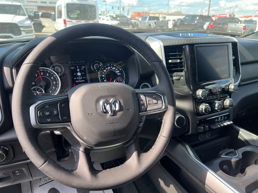 Quick Order Package 21Z Big Horn. Big Horn Level 1 Equipment Group: SiriusXM Radio Service; Rear Window Defroster; Rear View Auto Dim Mirror; Power Adjustable Pedals; Leather Wrapped Steering Wheel; Rear Power Sliding Window; Rear Dome with On/off Switch Lamp; Glove Box Lamp; Auto Power-Folding Mirrors; Exterior Mirrors with Heating Element; Auto Dim Exterior Driver Mirror; Heated Front Seats; Heated Steering Wheel; Black Exterior Mirrors; Black Premium Power Mirrors; SiriusXM Satellite Radio; 400W Inverter; Secondary Active Grille Shutters; Deluxe Cloth Bucket Seats; Exterior Mirrors with Supplemental Signals; Steering Wheel Mounted Audio Controls; Exterior Mirrors Courtesy Lamps; Body Color Fender Flares; 115V Auxiliary Power Outlet; Universal Garage Door Opener; 2nd Row in Floor Storage Bins; Convex Wide-Angle Exterior Mirror Insert; Sun Visors with Illuminated Vanity Mirrors. Sport Appearance Package: 275/55R20 OWL All Season Tires; Grille Surround 1 Body Color Texture 1 Black; Body Color Tailgate Handle; Black Interior Accents; Body Color Front Bumper; Body Color Door Handles; RAM Grille Badge - Chrome; Body Color Rear Bumper with Step Pads. 20" X 9" Aluminum Chrome Clad Wheels. Wheel to Wheel Side Steps. Trailer Brake Control. Diamond Black Crystal PC. MOPAR Front and Rear Rubber Floor Mats. 3.55 Rear Axle Ratio. **Equipment listed is based on original vehicle build and subject to change. Please confirm the accuracy of the included equipment by calling the dealer prior to purchase.**