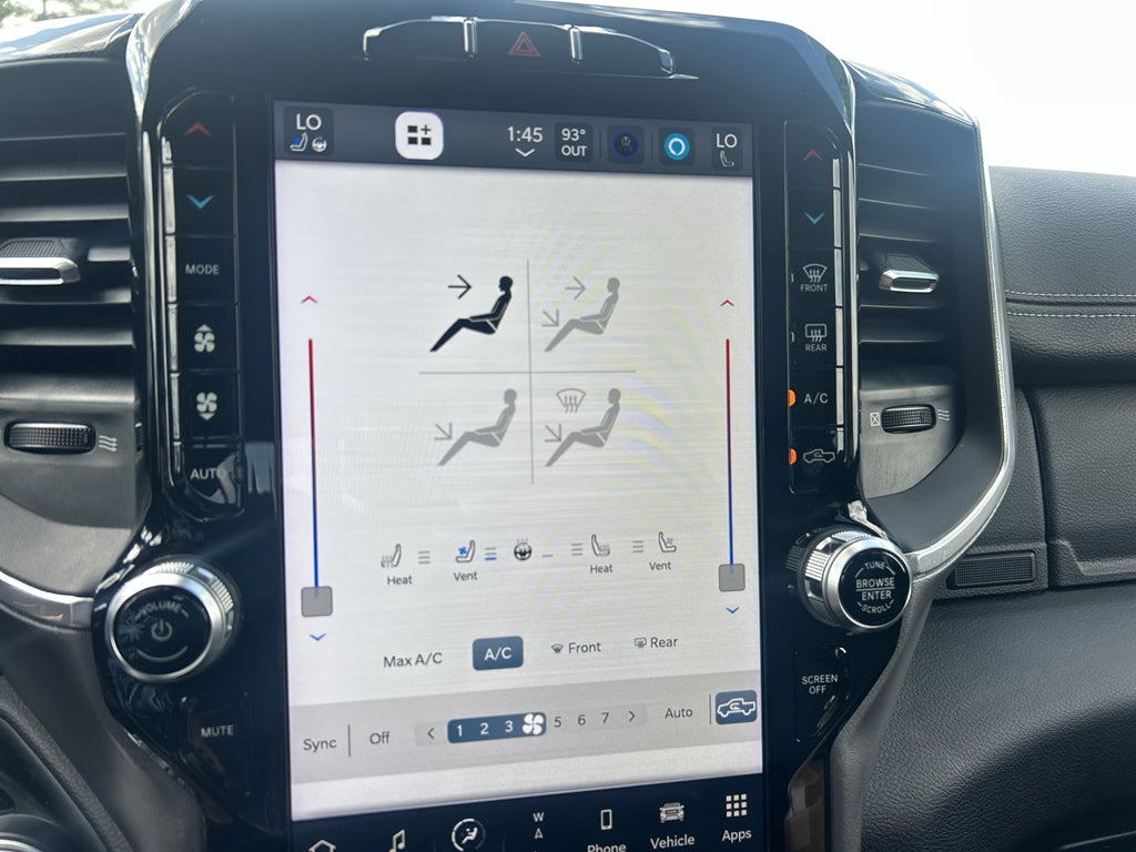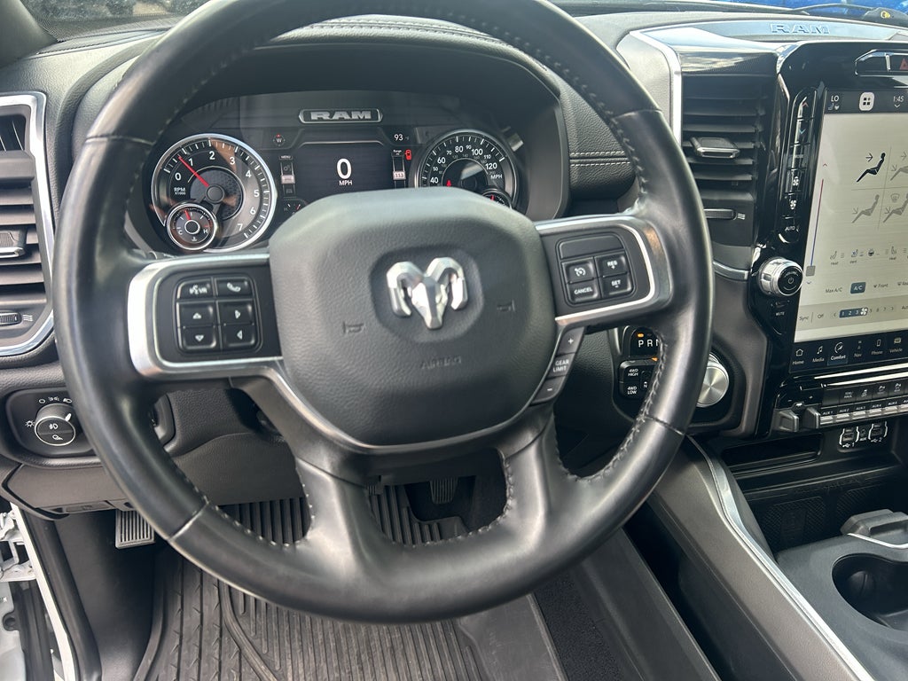 Quick Order Package 2GH Laramie. Laramie Level B Equipment Group: Mirror-Mounted Aux Reverse Lamps; Rain Sensitive Windshield Wipers; Power Adjustable Pedals with Memory; Ramcharger Wireless Charging Pad; Exterior Mirrors with Supplemental Signals; Power Chrome Tow Mirrors with Convex Spotter and Memory; Exterior Mirrors Courtesy Lamps; Trailer Tow Mirrors; Remote Tailgate Release; 17 Speaker Harman Kardon Premium Sound; Exterior Mirrors with Heating Element; Auto High Beam Headlamp Control; Chrome Exterior Mirrors; Exterior Mirrors with Memory; Heated Second Row Seats; Mirror Running Lights; Power Folding Mirrors; Foam Bottle Insert (door Trim Panel); 2nd Row in Floor Storage Bins; Radio/driver Seat/mirrors/pedals Memory; Power Adjustable Convex Aux Mirrors. Night Edition: Mirror-Mounted Aux Reverse Lamps; Black Ram Head Tailgate Badge; 20" X 8.0" Black Painted Aluminum Wheels; Exterior Mirrors with Supplemental Signals; Black Headlamp Bezels; Body Color Door Handles; Exterior Mirrors Courtesy Lamps; Painted Front Bumper; Painted Rear Bumper; Trailer Tow Mirrors; Exterior Mirrors with Heating Element; LT285/60R20E OWL On/off Road Tires; Black Exterior Truck Badging; Exterior Mirrors with Memory; Gloss Black Grille Billets/accents; Mirror Running Lights; Body Color Grille Surround; Black Interior Accents; Power Folding Mirrors; Black Exterior Mirrors; Black Tail Lamp Bezels; Power Black Tow Mirrors with Convex Spotter and Memory; Power Adjustable Convex Aux Mirrors. Towing Technology Group B: Center Stop Lamp with Cargo View Camera; Mirror-Mounted Aux Reverse Lamps; Surround View Camera System; Exterior Mirrors with Supplemental Signals; Power Chrome Tow Mirrors with Convex Spotter and Memory; Exterior Mirrors Courtesy Lamps; Trailer Tow Mirrors; Exterior Mirrors with Heating Element; Chrome Exterior Mirrors; Exterior Mirrors with Memory; Mirror Running Lights; Power Folding Mirrors; Trailer Reverse Guidance; Power Adjustable Convex Aux Mirrors. Snow Chief Group. Uconnect 5 Navigation with 12.0" Display Radio. MOPAR Spray in Bedliner. Leather Trimmed Bucket Seats. Anti-Spin Differential Rear Axle. Center Stop Lamp with Cargo View Camera. LED Bed Lighting. Instrument Panel Mounted Auxiliary Switches. Tow Hooks. Clearance Lamps. **Equipment listed is based on original vehicle build and subject to change. Please confirm the accuracy of the included equipment by calling the dealer prior to purchase.**