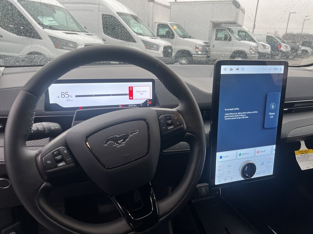 See what's behind you with the back up camera on this vehicle. This vehicle has automated speed control that adjusts to maintain a safe following distance, enhancing highway driving convenience. The vehicle has a clean CARFAX vehicle history report. Good News! This certified CARFAX 1-owner vehicle has only had one owner before you. The installed navigation system will keep you on the right path. The vehicle features a hands-free Bluetooth® phone system. This mid-size suv offers Apple CarPlay for seamless connectivity. This mid-size suv offers Android Auto for seamless smartphone integration. This Ford Mustang Mach-E is pure luxury with a heated steering wheel. The leather seats in this 2025 Ford Mustang Mach-E are a must for buyers looking for comfort, durability, and style. This 2025 Ford Mustang Mach-E is equipped with all wheel drive. This model has a Electric Motor high output engine. This model is painted with a sleek and sophisticated black color.