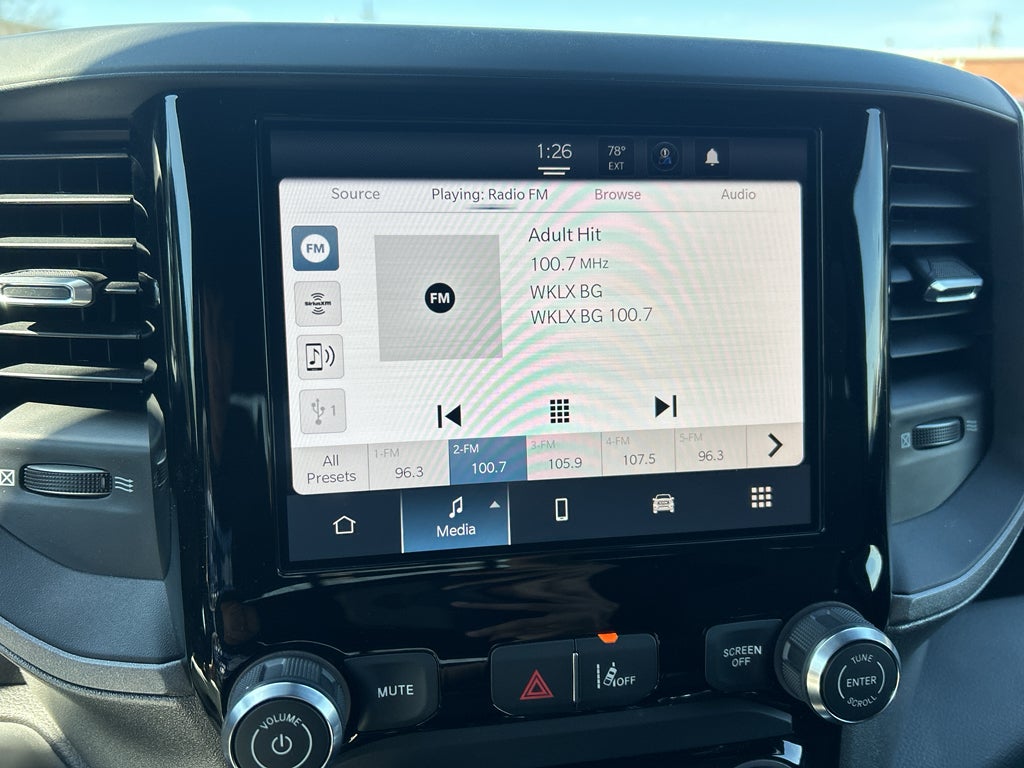 The Ram 1500 offers Apple CarPlay for seamless connectivity. The Ram 1500's Forward Collision Warning feature alerts drivers to potential front-end collisions. Our dealership has already run the CARFAX report and it is clean. A clean CARFAX is a great asset for resale value in the future. Protect the Ram 1500 from unwanted accidents with a cutting edge backup camera system. Bluetooth® technology is built into it, keeping your hands on the steering wheel and your focus on the road. This vehicle is equipped with the latest generation of XM/Sirius Radio. This 1/2 ton pickup's Lane Departure Warning helps keep you in your lane. The rear parking assist technology on this Ram 1500 will put you at ease when reversing. The system alerts you as you get closer to an obstruction. This vehicle is a certified CARFAX 1-owner. It offers Android Auto for seamless smartphone integration. The satellite radio system in this Ram 1500 gives you access to hundreds of nation-wide radio stations with a clear digital signal.